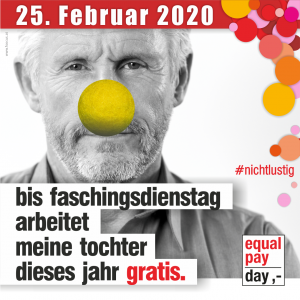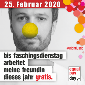 Der aktuelle Pay Gap wird durch den Equal Pay Day visualisiert, er steht am Ende der unbezahlten Arbeitsperiode von 1. Jänner ausgehend. Im Sinne der #transparenz legen wir die Formel offen, mittels der wir den Aktionstag berechnen. Die Rechnung ist einfach und kann auf jedem Bierdeckel nachgerechnet werden 😉