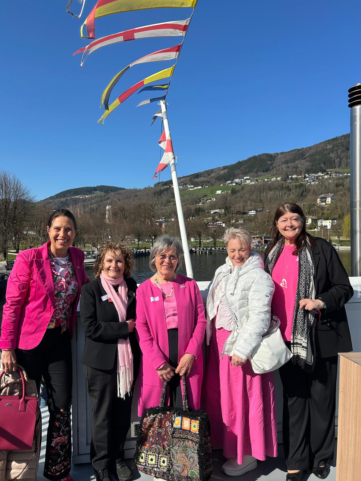 Liebe BPW-Freundinnen, unglaublich, wie die Zeit vergeht: Wir feiern heuer 25 Jahre BPW Salzkammergut! Weil es vor einem Vierteljahrhundert einige engagierte Frauen gab, die sich zusammengetan und unseren Club gegründet haben, konnten wir alle einander überhaupt kennenlernen. Dieses Jubiläum haben wir gemeinsam mit vielen von Euch gebührend zelebriert! Es war ein unvergesslicher Nachmittag und Abend im Zeichen des Austauschs am und auf dem wunderschönen Mondsee. Nach dem Motto »Pink am See« freuen wir uns, dass Ihr beim Dresscode dabei wart: ob ein Kleidungsstück, ein Accessoire oder von Kopf bis Fuß in Pink – damit haben wir unsere Verbundenheit auch optisch sichtbar gemacht. Eine große Freude war auch, dass wir Francesca Burack, 2nd Vice President BPW International, begrüßen durften! |