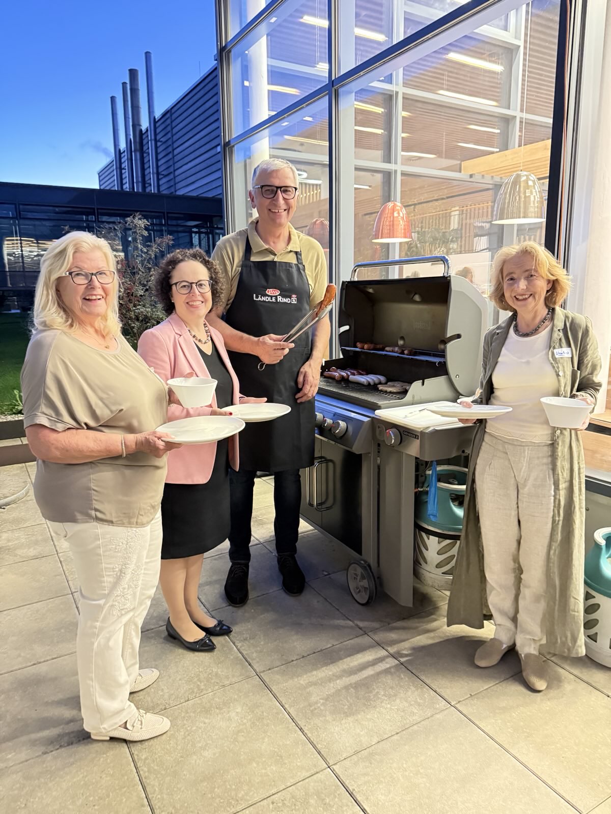 Die Krönung unserer wunderbaren Führung durch die SPAR-Zentrale war die Einladung in die Kantine zu Gegrilltem, Salaten, Brote und Kuchen sowie gekühlten Getränken. Milan Lovric, der Leiter von TANN grillte höchstpersönlich für uns vor Ort. Die Kantine ist ein Blickfang und lädt zu gemütlichem Beisammensein ein. So haben wir es genossen, verwöhnt zu werden, mit hauseigenen Kreationen, die es auch für Kunden in jedem SPAR-Markt gibt.