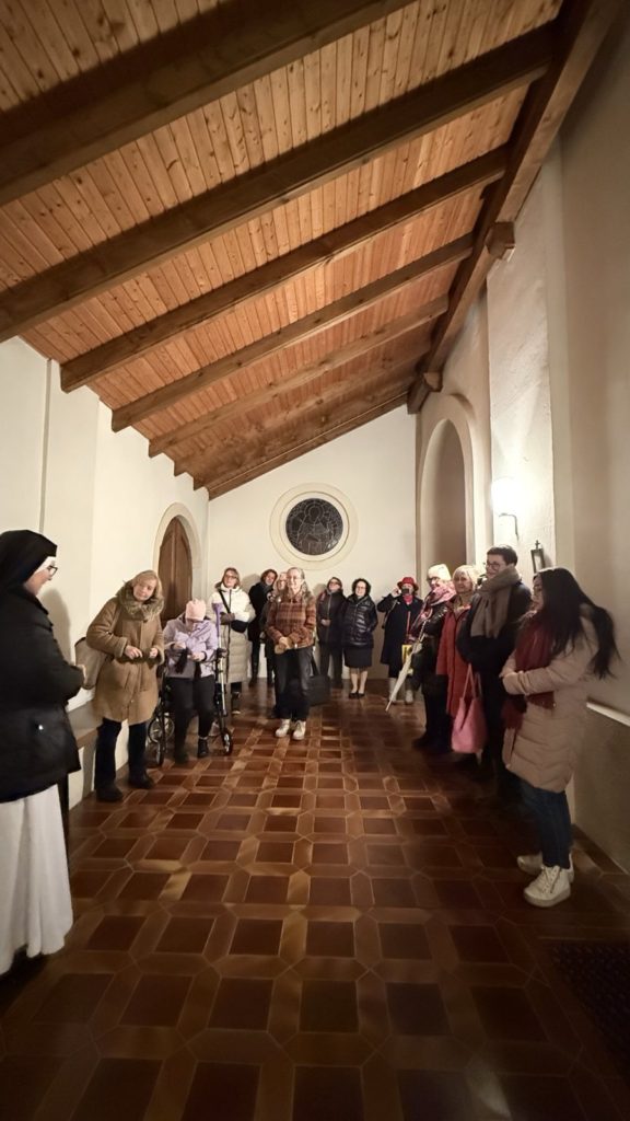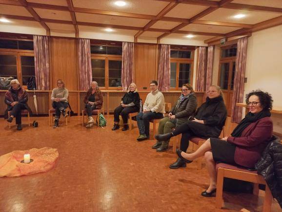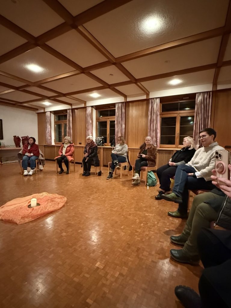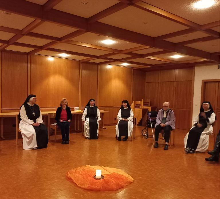 Nach der Führung kommen wir durchgefroren im Gemeinschaftsraum an. Eine Kerze wird angezündet und was die Schwestern aus ihrem Leben erzählen, ist nicht viel anders als wir es in unseren Familien und Jobs erleben. Wir empfinden Verbundenheit. Allerdings spüren wir auch den Mehrwert, die Stille und die Tiefe, die mitschwingt in jeder Antwort. Etwas, was uns in unserem zum Teil hektischen Alltag abhandengekommen ist. Man sinniert darüber, hier einmal Gast zu sein, denn mit den Schwestern kann gemalt, geschwiegen oder gefastet werden. Das Programm ist vielfältig.