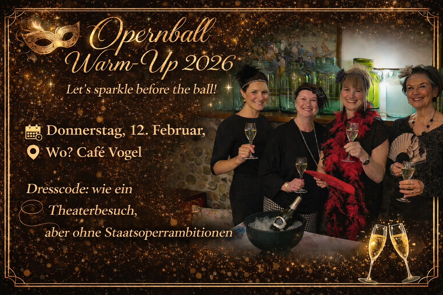 Feb. 12 Opernball Warm-Up 18:30 - 21:00 Cafe Konditorei Vogl Stadtpl. 27, Eferding Veranstaltung Details Wegbeschreibung