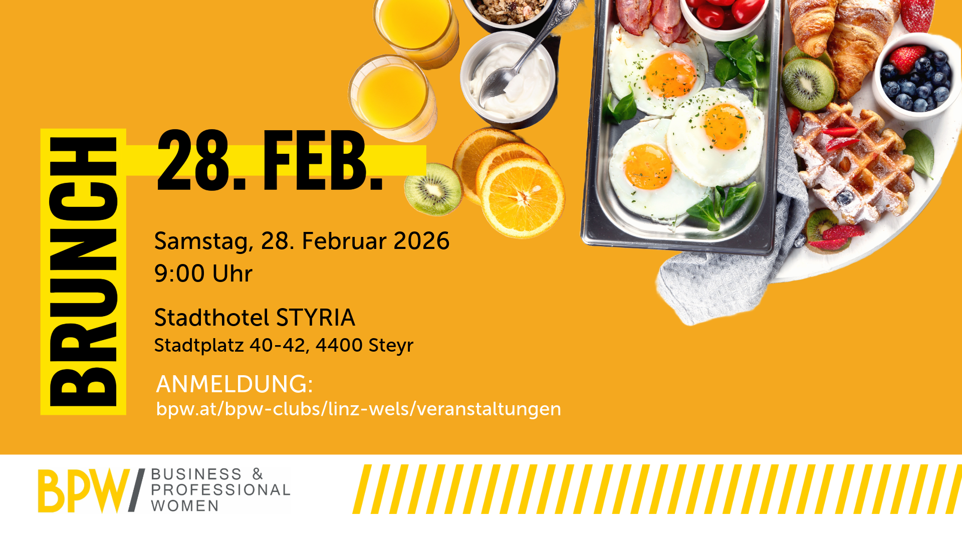 Feb. 28 BPW Steyr Brunch! 9:00 - 12:00 Stadthotel STYRIA Stadtplatz 40-42, Steyr Veranstaltung Details Wegbeschreibung